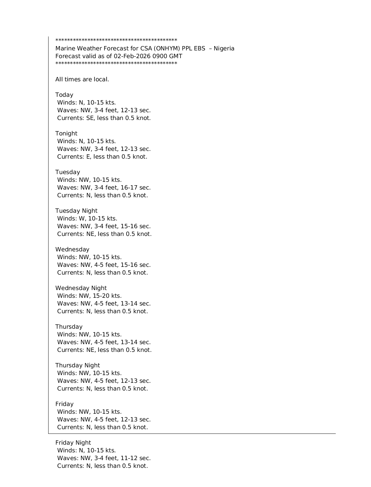 CSA (ONHYM) PPL EBS – Nigeria