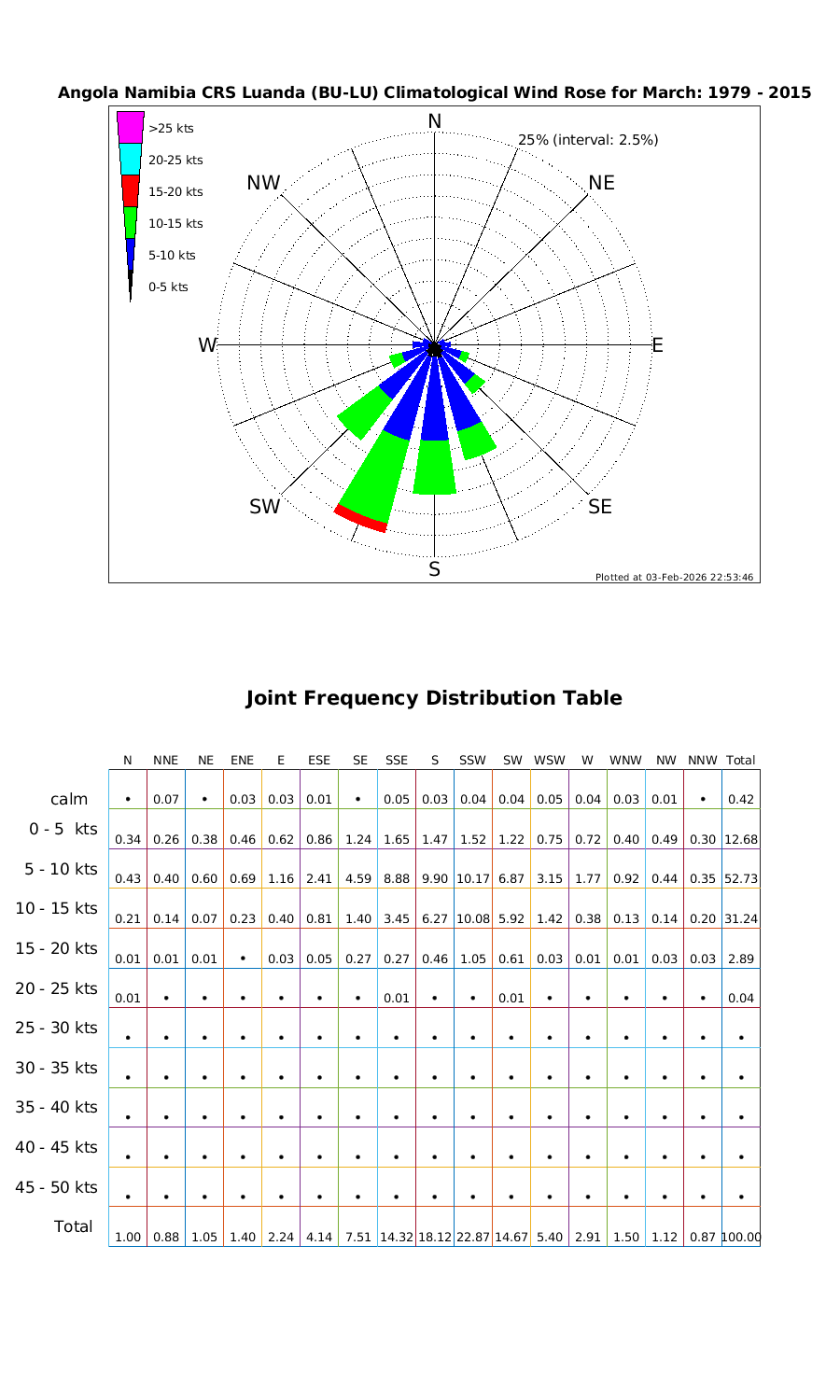 Wind Speed Directional Rose & Table