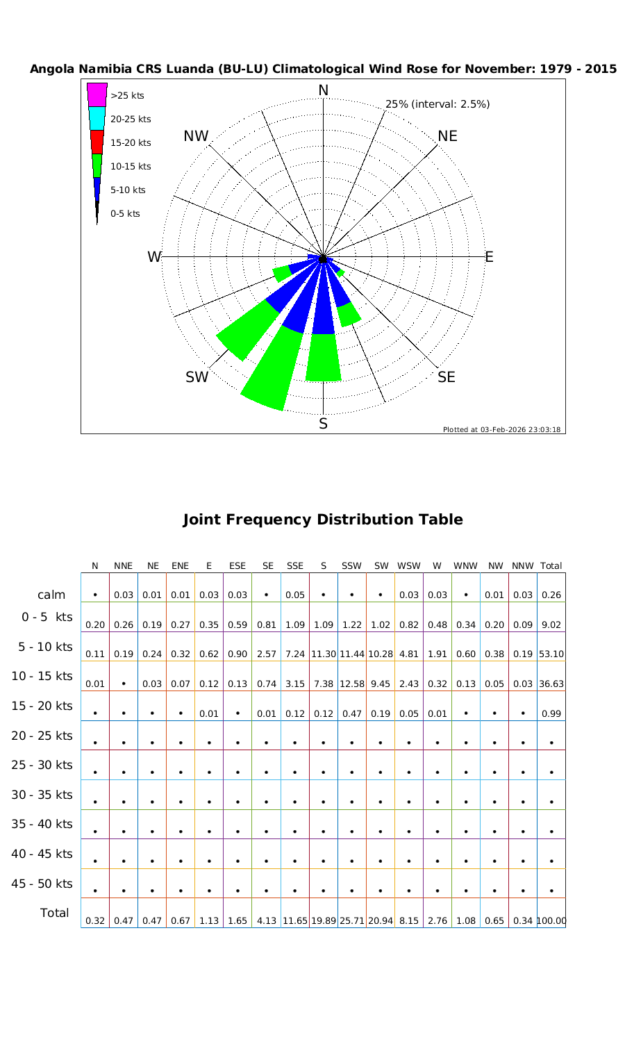 Wind Speed Directional Rose & Table