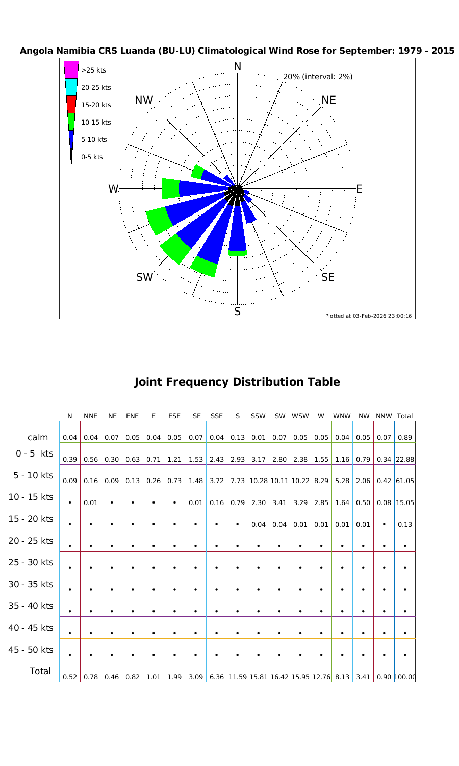 Wind Speed Directional Rose & Table