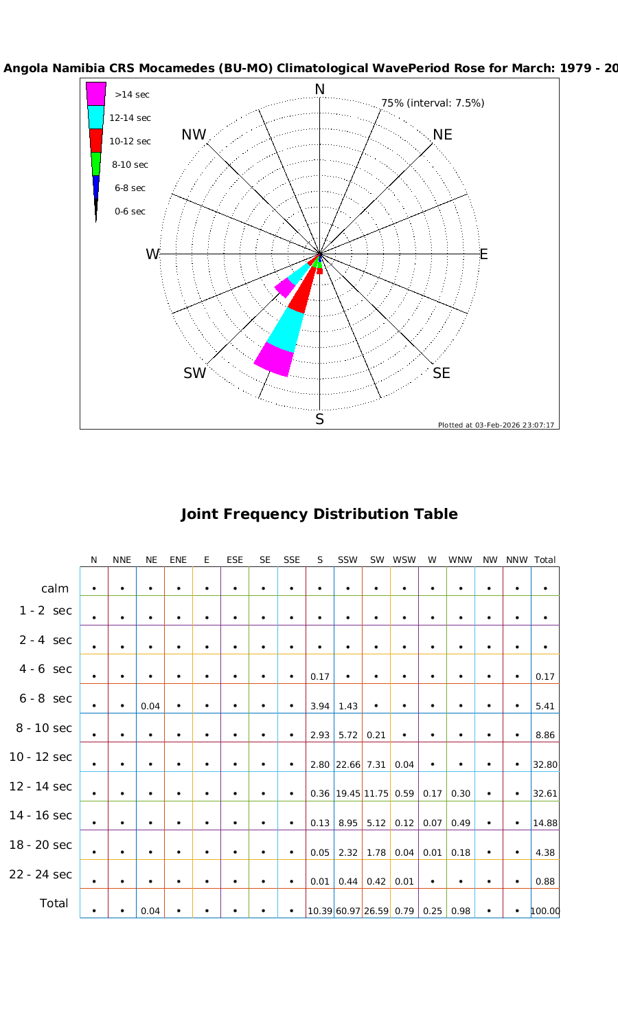 Wave Period Directional Rose & Table