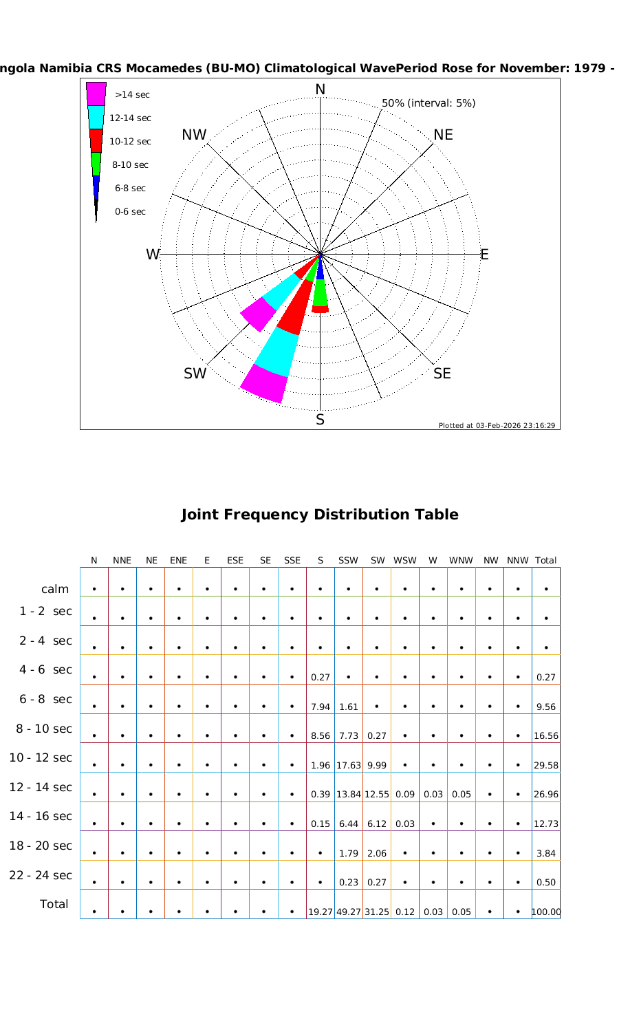 Wave Period Directional Rose & Table