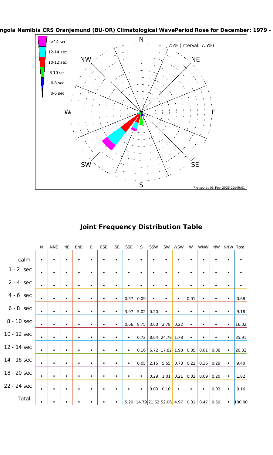 Wave Period Directional Rose & Table