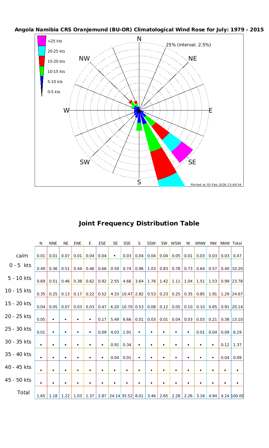 Wind Speed Directional Rose & Table