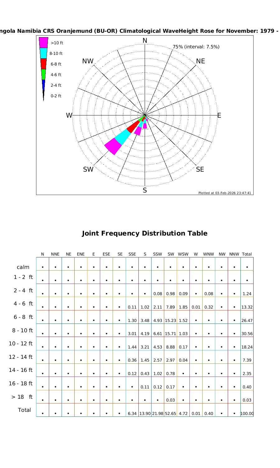 Wave Height Directional Rose & Table