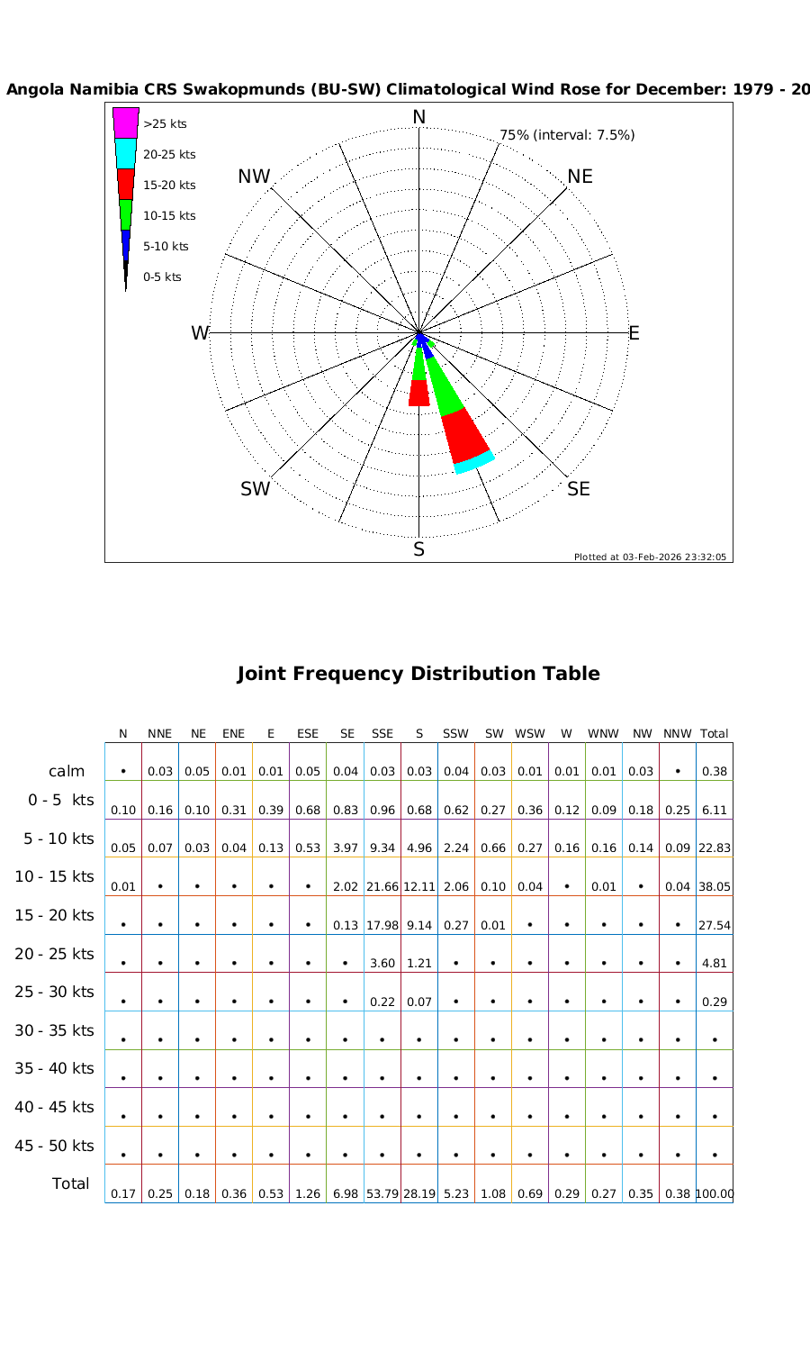 Wind Speed Directional Rose & Table
