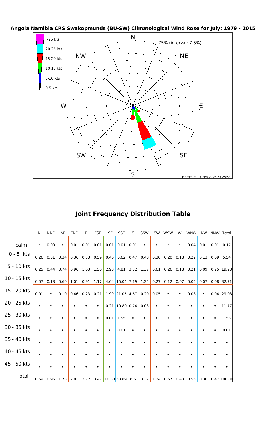 Wind Speed Directional Rose & Table