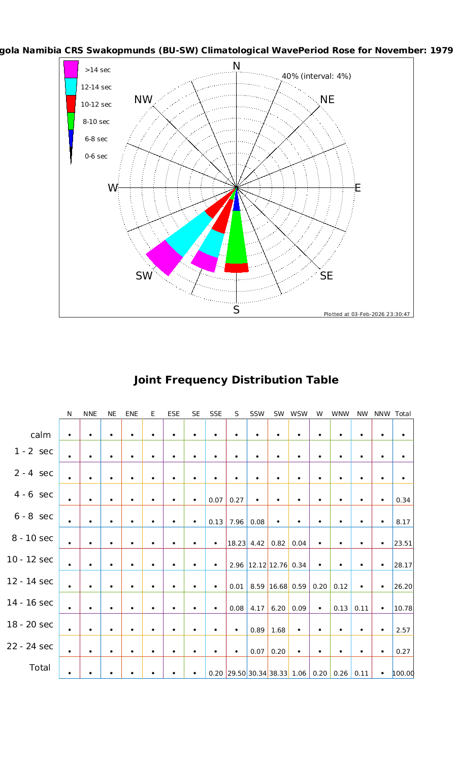 Wave Period Directional Rose & Table
