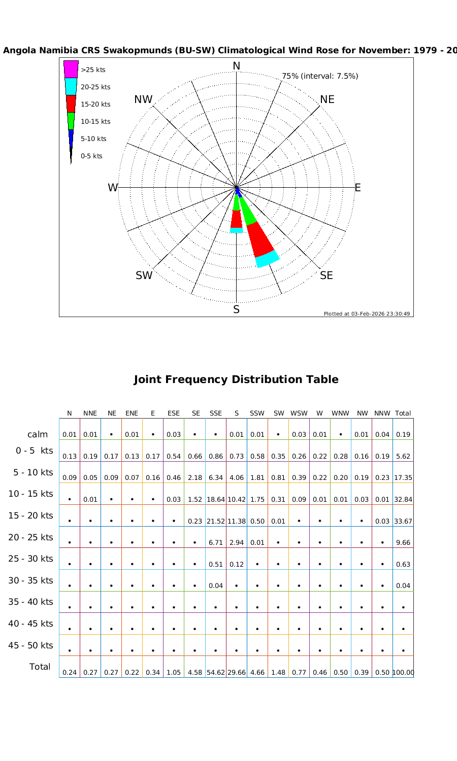 Wind Speed Directional Rose & Table