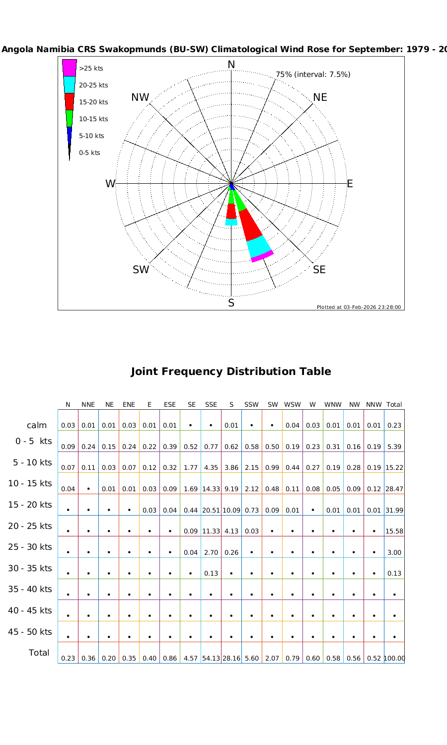 Wind Speed Directional Rose & Table