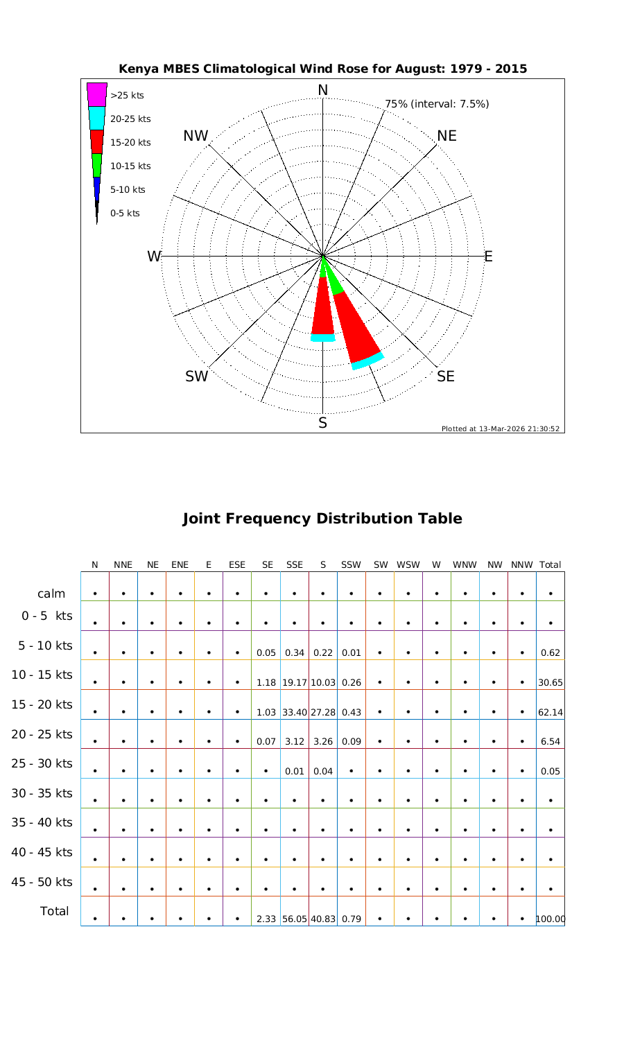 Wind Speed Directional Rose & Table