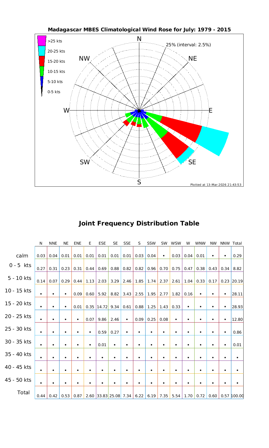 Wind Speed Directional Rose & Table