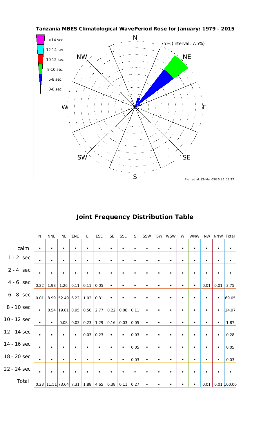 Wave Period Directional Rose & Table