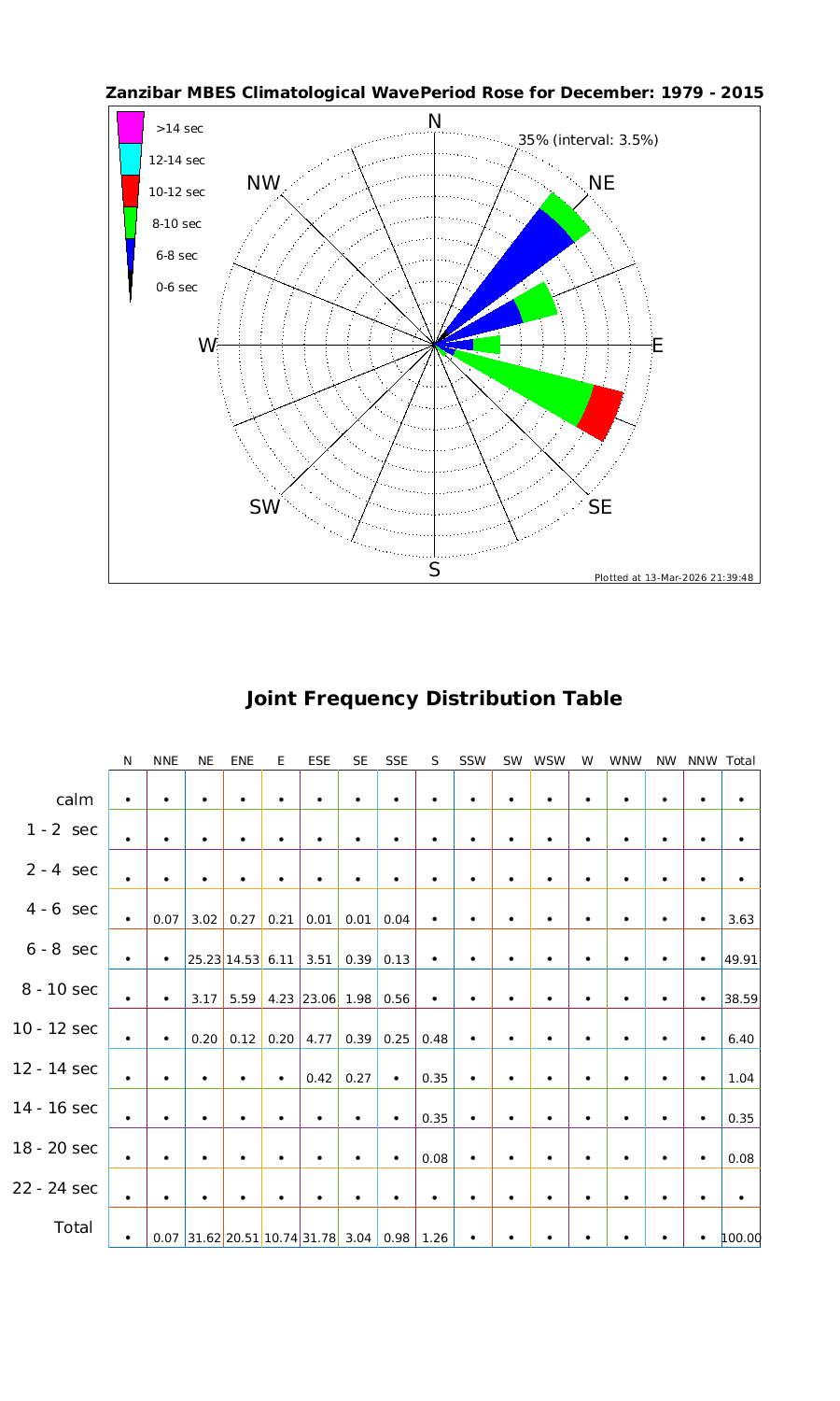 Wave Period Directional Rose & Table