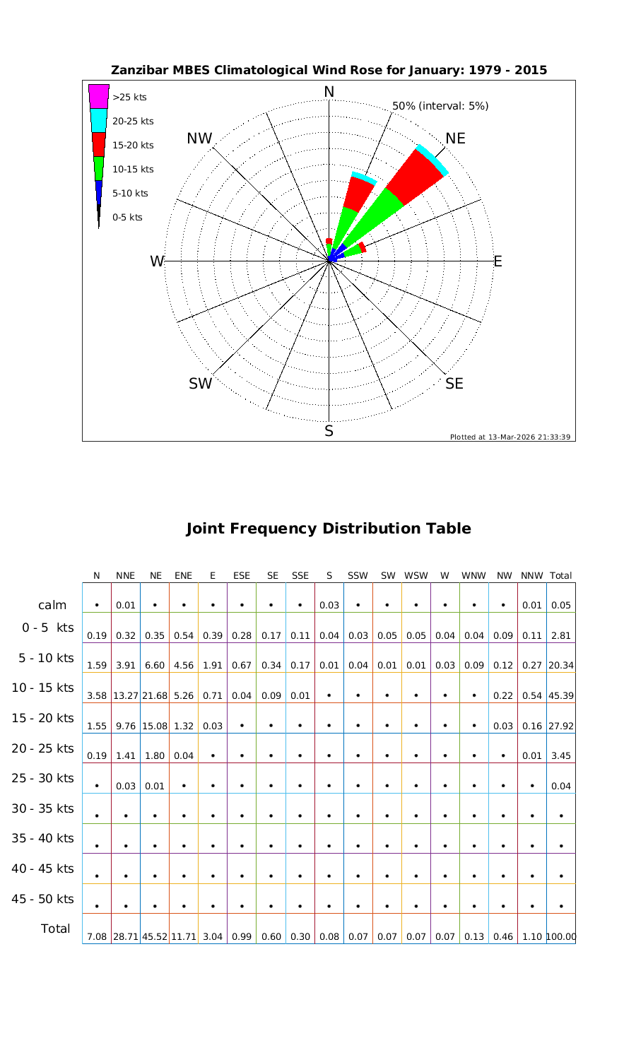 Wind Speed Directional Rose & Table